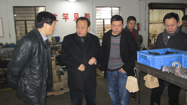 2014年2月19日上午,縣委常委、副縣長(zhǎng)王軍率縣府辦、國(guó)稅局、小將鎮(zhèn)黨委一行冒雨來(lái)公司調(diào)研,并實(shí)地察看公司前橋車(chē)間、后橋車(chē)間和總裝車(chē)間三大流水線生產(chǎn)狀況。