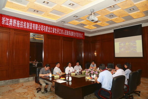 雙方就建立東北亞銷售網(wǎng)絡(luò)還進(jìn)行了會(huì)談,并簽訂了戰(zhàn)略合作框架協(xié)議。協(xié)議重點(diǎn)指出,牡丹江市委市政府將撮合浙江奔野公司與黑龍江省農(nóng)機(jī)總公司的經(jīng)銷合作,這將使浙江奔野公司攜手又一大農(nóng)機(jī)經(jīng)銷商。黑龍江省農(nóng)機(jī)總公司是國家一級(jí)農(nóng)機(jī)營銷企業(yè),年銷售額超過20億元,是農(nóng)機(jī)經(jīng)銷商中的航空母艦。預(yù)計(jì)合作開展后,公司經(jīng)銷網(wǎng)絡(luò)將得到全面擴(kuò)展,全年在黑龍江市場銷售農(nóng)機(jī)數(shù)量將提高10多倍。協(xié)議還就知識(shí)產(chǎn)權(quán)保護(hù)作出了和合理化建議,牡丹江市委市政府將牽頭相關(guān)部門全力嚴(yán)查知識(shí)產(chǎn)權(quán)侵權(quán)現(xiàn)象,打擊模仿浙江奔野公司“浙拖”、“奔野”品牌的類似機(jī)型,為經(jīng)銷商造創(chuàng)造良好的市場環(huán)境,保護(hù)當(dāng)?shù)剞r(nóng)機(jī)戶的合法利益。會(huì)談中,牡丹江市委張書記多次談到浙江奔野公司“浙拖”牌拖拉機(jī)在牡丹江市場的影響力,分析了當(dāng)?shù)剞r(nóng)業(yè)機(jī)械化的現(xiàn)狀,也寄語了浙江奔野公司能夠提升技術(shù),創(chuàng)新發(fā)展,為解決時(shí)下“三農(nóng)”問題,助力改革發(fā)展。對(duì)此,公司總經(jīng)理在會(huì)中談道:“非常感謝牡丹江市委市政府對(duì)浙江奔野公司的關(guān)注,能夠得到牡丹江市委市政府的大力支持,是浙江奔野公司的榮幸。公司會(huì)一直保持以價(jià)廉質(zhì)優(yōu)的服務(wù)準(zhǔn)則,一如既往的生產(chǎn)適宜當(dāng)?shù)乩习傩崭鞯霓r(nóng)用機(jī)械,為當(dāng)?shù)乩习傩罩赂回暙I(xiàn)一份力量”。